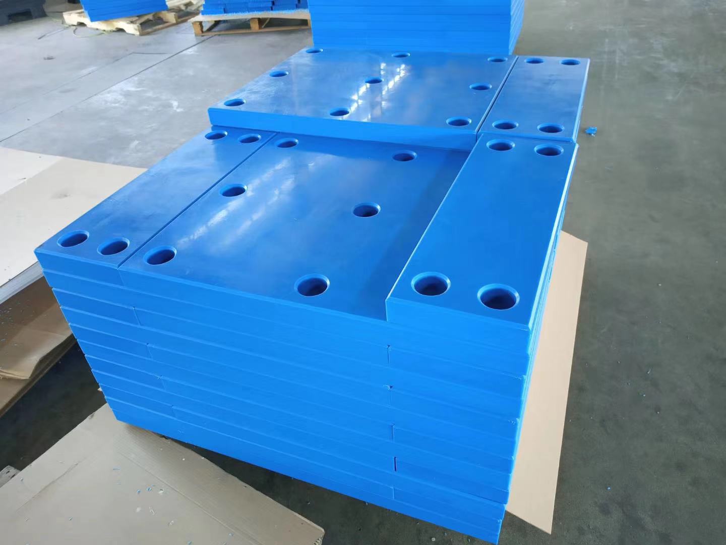 由于超高分子量聚乙烯板UHMWPE板護舷貼面板具有很好的耐磨性、環保、防靜電、緩沖、高耐磨 、防潮、耐腐蝕、易加工 、吸震、無噪音、 經濟、不變形、抗沖擊性、自潤滑性,所以很適合制作各種耐磨機械零件,如托輪、軸套、噴嘴、攪拌葉,應用范圍極為廣泛。